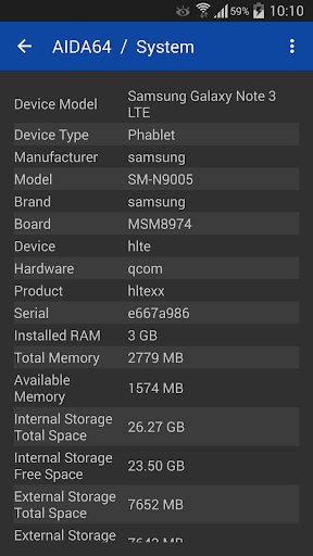 Tiện ích thông tin phần cứng và phần mềm cho các thiết bị dựa trên Android. Dựa trên kiến thức phần cứng sâu rộng về ứng dụng AIDA64 cho Windows, AIDA64 cho Android có khả năng hiển thị nhiều thông tin chẩn đoán khác nhau cho điện thoại, máy tính bảng, smartwatch và TV.